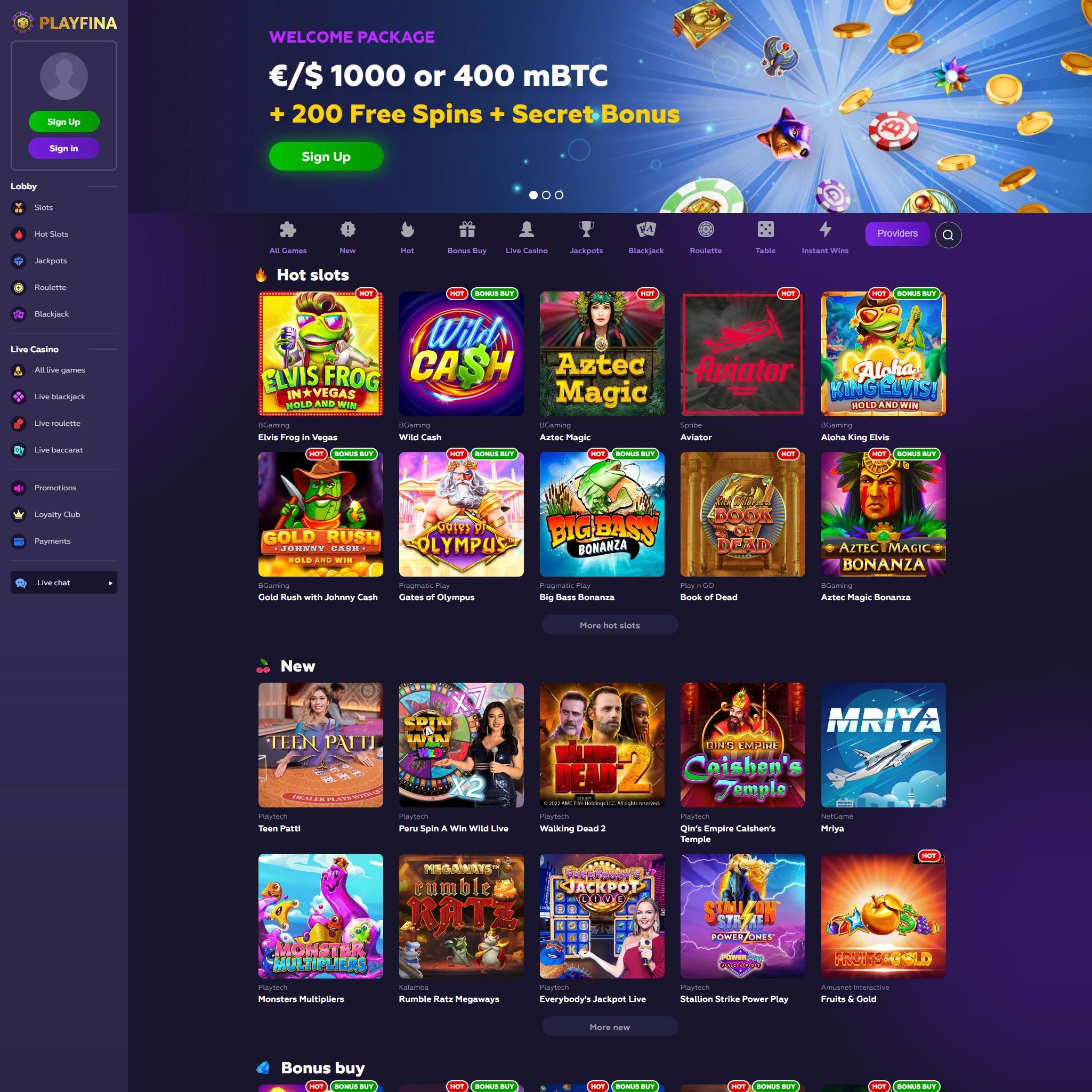 2. Generous Bonuses and Promotions: Players at Playfina can benefit from various bonuses and promotions, such as welcome bonuses, free spins, and loyalty rewards, enhancing the overall gaming experience.